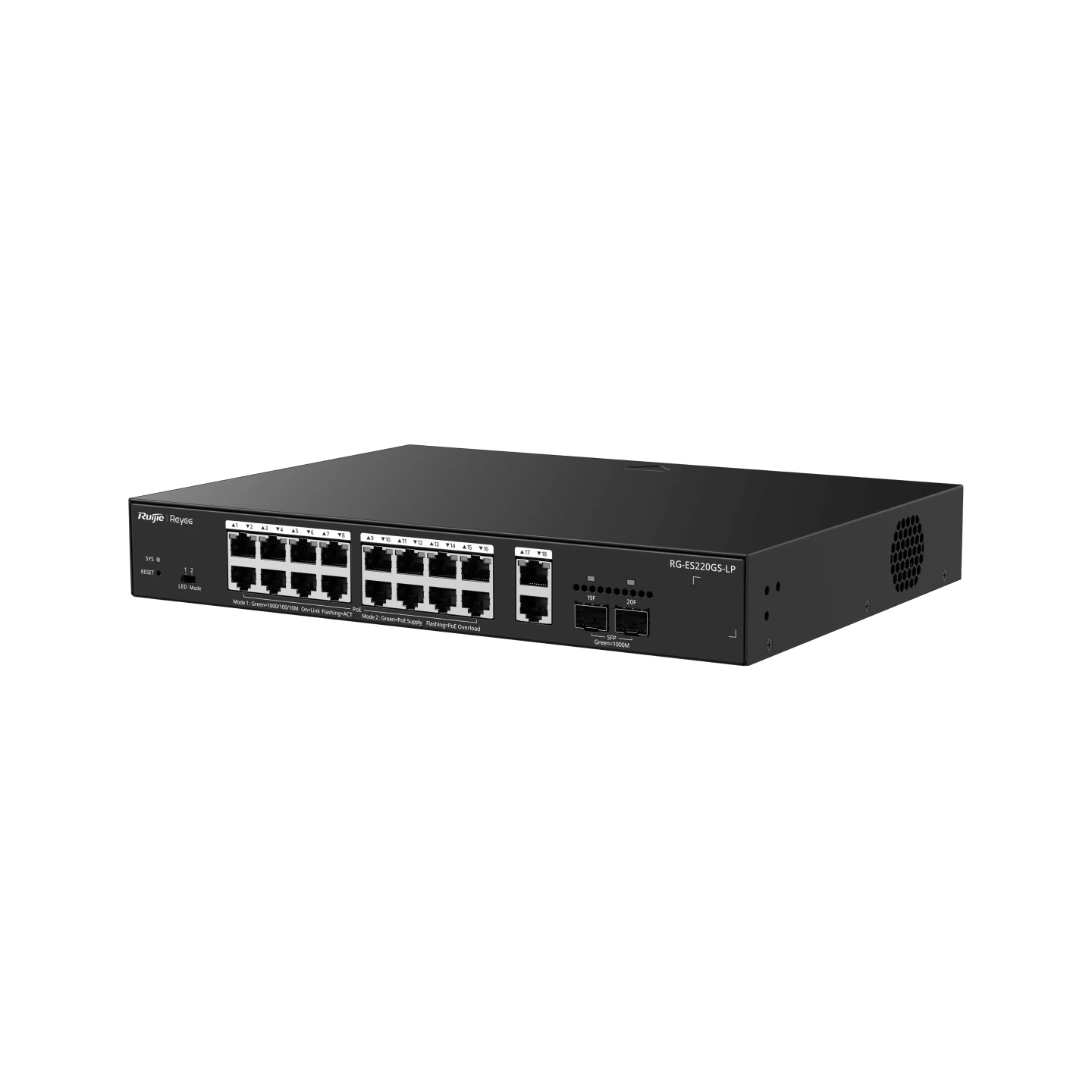 Switch PoE 20 Cổng Ruijie Reyee RG-ES220GS-LP – Không Quạt Yên Tĩnh, 4 Uplink Độc Lập, Chuyên Dụng CCTV & Văn Phòng